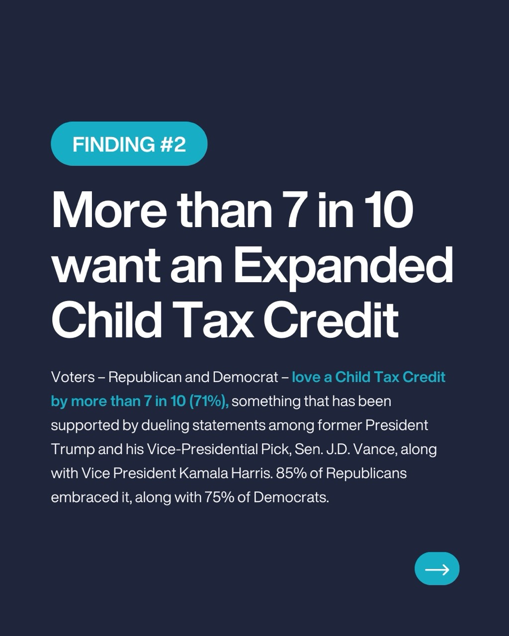 - More than Seven in 10 want an Expanded Child Tax Credit